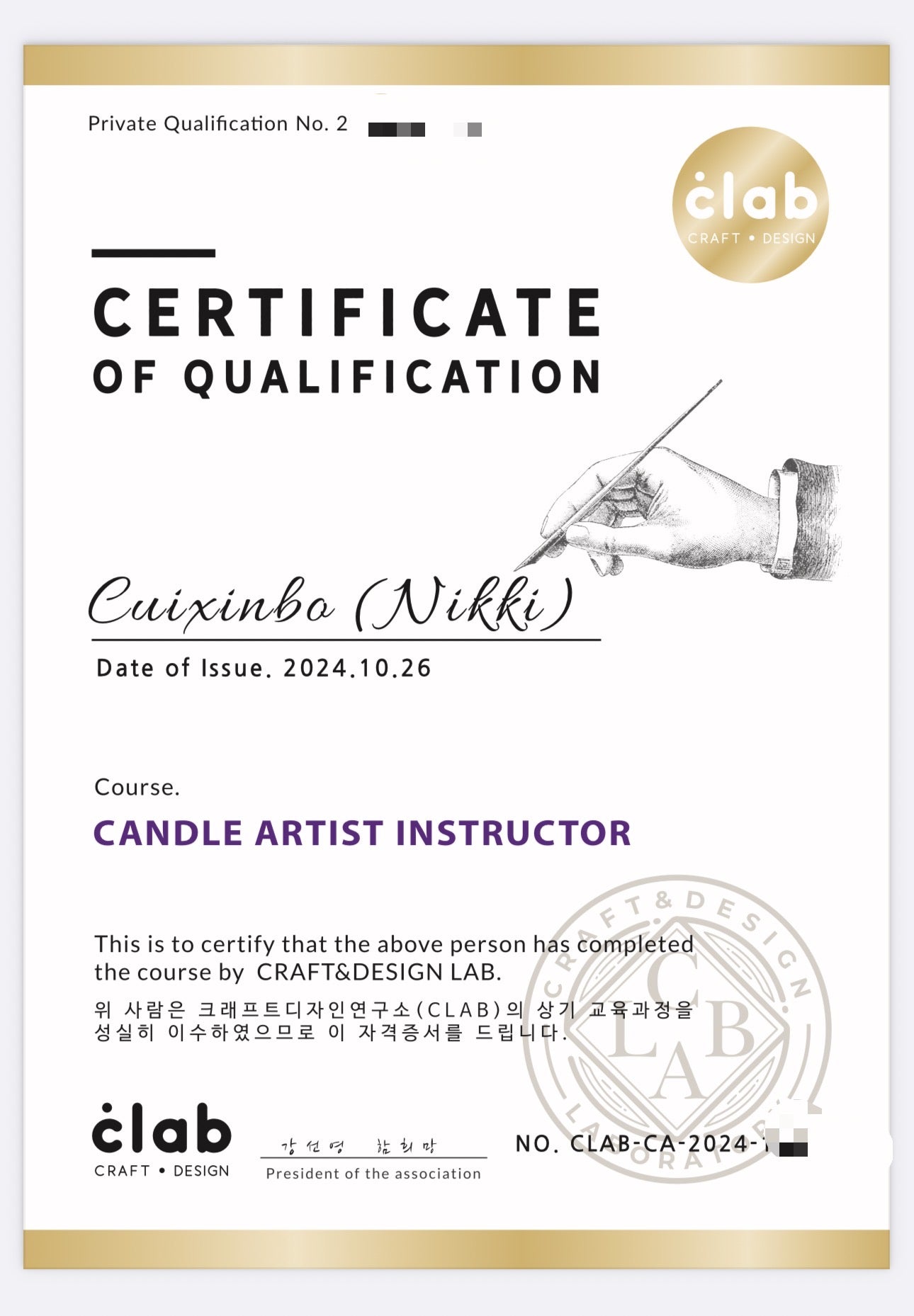 Yes. Upon completing all required works, you will receive the official CLAB Candle Artist Certification from Korea.